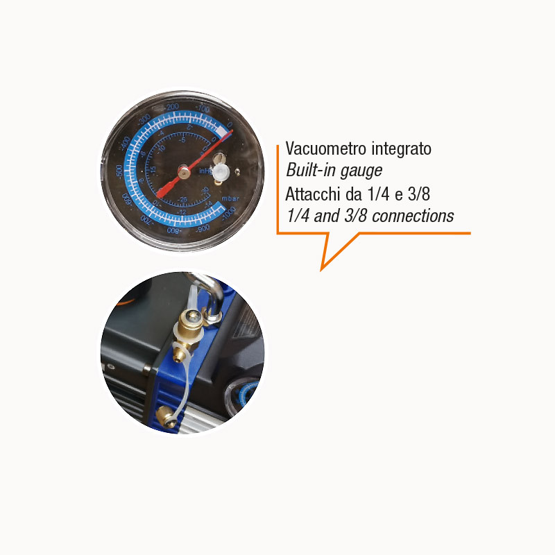 Suitable for obtaining vacuum on lines that have contained CFC, HCFC, HFC, HFO refrigerants, and therefore suitable for R32 - R410 and also R 290-R600-1234YF