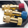 The hoses are perfectly interchangeable having the same technical characteristics. The novelty of this product lies in the patented Safe Seal valve technology which helps the operator. The operating pressure is 55 bar and the maximum burst pressure is 275 bar. The size of the fittings is 5/16 at both ends of the hose, making it suitable for R32 and R410.