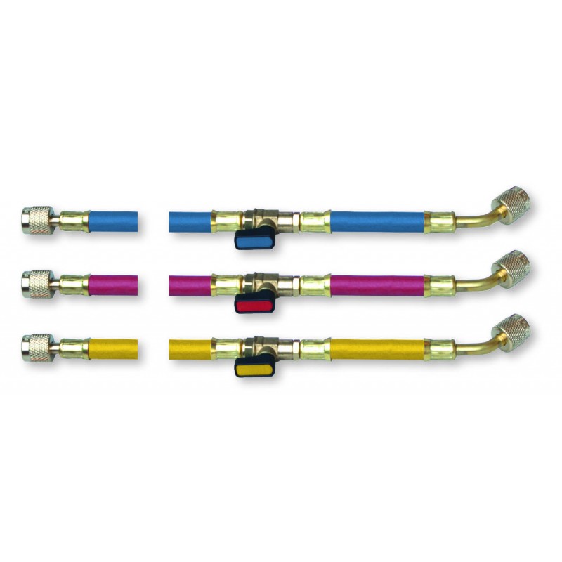 1500 mm 3 flexible hoses series with mid valve - 45° 3TF-1500-1/4-45-BRY-V -...
