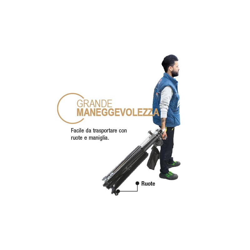 It is a powerful tool for lifting heavy objects, such as air conditioning systems; indoor and outdoor units, electric roller doors, etc. it can also be used to lift heavy objects in different areas. Compared to its capacity, the lift is relatively light (about 30 kg) in transport as it is equipped with wheels and a handle.