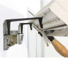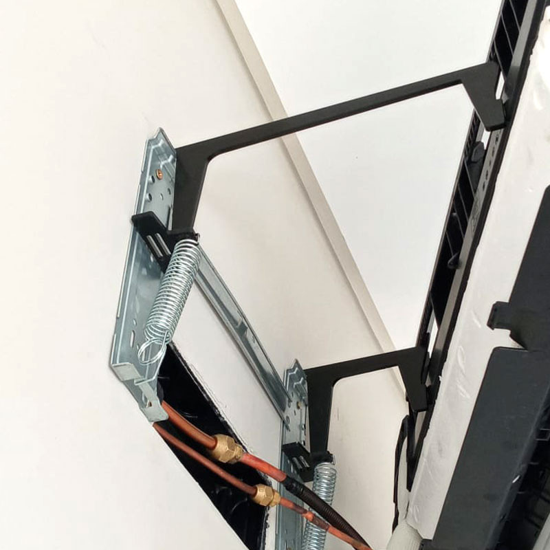 Brackets designed for mini-split installation, capable of supporting evaporators up to 30K BTU. Using this compact piece of equipment, the technicians can make the necessary electrical connections, the lines of the refrigerant gas and those of the flexible pipes for the condensate drain. The brackets are made of painted steel and have springs capable of adapting to the most common ranges of indoor units; they also offer an angle of intervention that varies between 23 and 45 degrees. The product consists of 2 brackets of different sizes (A and B).
