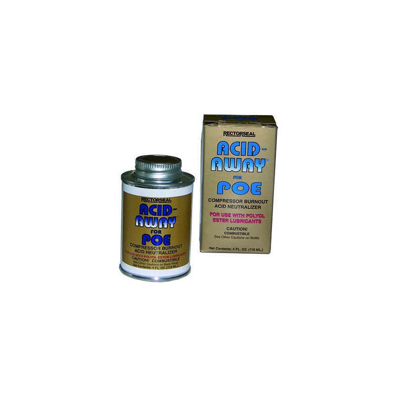 Prodotto indicato per impianti di condizionamento e di refrigerazione contenenti olii minerali, con problemi di combustione e presenza di acido. Acid away è un trattamento chimico brevettato che neutralizza l’acido presente negli impianti in seguito ad una bruciatura del compressore. La versioni di Acid Away Poe è da utilizzarsi su impianti con olii sintetici (Poe).