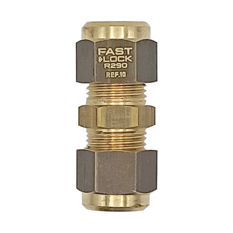 Giunti, angoli e T per tubi rame in mm FASTLOCK ad alta tenuta di pressione, in solido ottone interamente prodotti in Italia. Permettono la giunzione di tubi senza ricorrere a flangiature e saldature. Sono giunti ad innesto con avvitamento tramite chiave dinamometrica oppure con chiave inglese. Sono garantiti per la tenuta ed utilizzabili con refrigeranti infiammabili e CO2. Il meccanismo di tenuta interna è brevettato ed è corredato di tutte le certificazioni e test di tenuta. Sono adatti per tubi rame in mm con diametri da 1 a 22 mm. I raccordi FASTLOCK sono riutilizzabili poichè al loro interno hanno un'ogiva ed una guarnizione che possono essere sostituite.