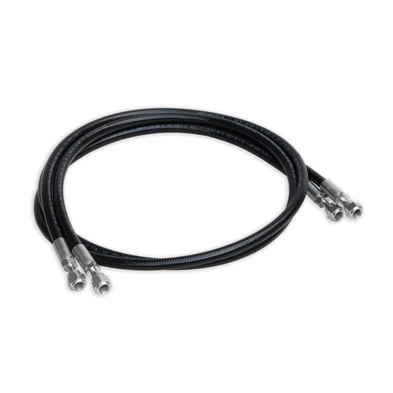 Tubi per CO² (R744) in solido neoprene rinforzato, lunghi 1500 mm con attacco femmina girevole 1/4 SAE, nessuna valvola. Resistenti fino ad una pressione MAX di 130 bar. Massima pressione di scoppio 700bar. Realizzati interamente in neoprene nero e senza rubinetto secondo la normativa EN/1736/PED.