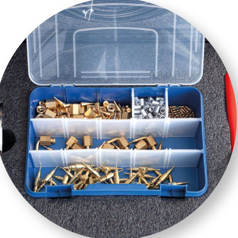 Composizione Kit● Valigetta in ABS nera● 50 mt tubo nero diametro 2 mm● 50 raccordi dritti DN2 con boccole● 50 depressori DN2● Taglierina per DN2Codice: 17040212Modello: CRTKIT